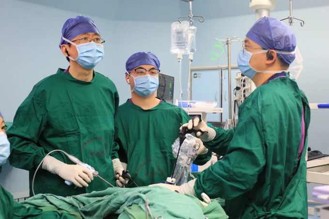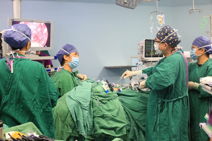 ▲妇科陈捷主任医师团队行腹腔镜下阴道成形术