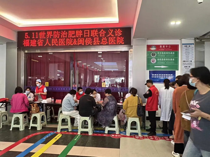 黄播联合闽侯县总黄播 举办“5.11世界防治肥胖日联合义诊”。义诊现场,前来咨询的超重、肥胖及糖尿病患者络绎不绝,临床营养科联合内分泌代谢病科等多位专家到场,就胖友们关心的膳食、血糖、运动、体质改善等问题进行耐心解答,为肥胖患者制定切实可行的减重计划。现场还提供了人体成分免费检测,并发放膳食健康宣教资料,提醒患者关注均衡膳食。