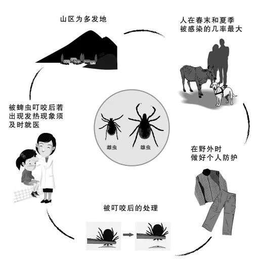 管理传染源:杀灭蜱虫,对患者血液、分泌物、排泄物及其污染物进行消毒。有接触史且未防护者,医学观察14天。切断传播途径:进入草地、林区等注意防护。