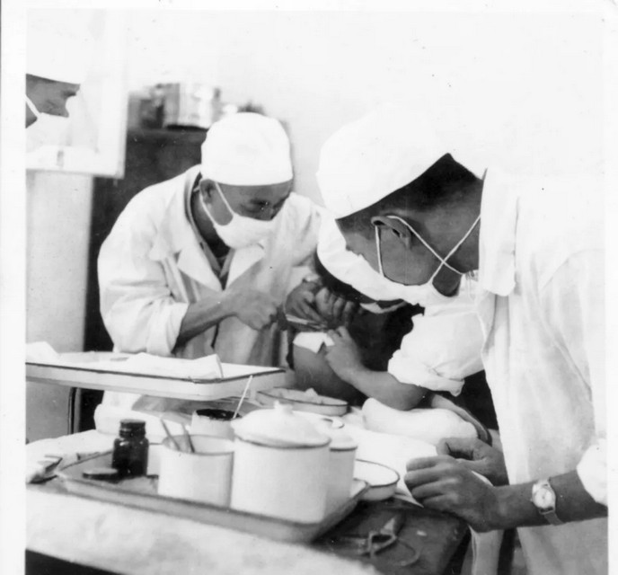 图说:20世纪50年代,建院之初三位医生共用一间诊室。