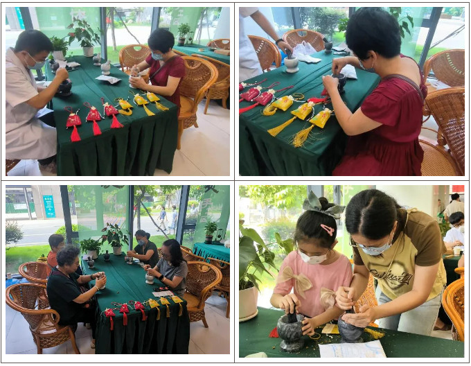 香草为佩,驱暑安神,中药香囊自古以来就承载着人民群众对健康生活的渴望与祈愿。活动现场精心准备了防暑、安神等功效的中草药与精美的香囊袋,群众们在药师的细心指导下,选取自己喜欢的药材,耐心捣碎碾磨成药粉,亲手装袋制成中药香囊,在颇有趣味的制作过程中体验了一把做“中药师”的乐趣,也亲身感受到中医药文化的独特魅力。一枚小小中药香囊,也为群众们在追求健康的道路上增添了一份别样的芳香!