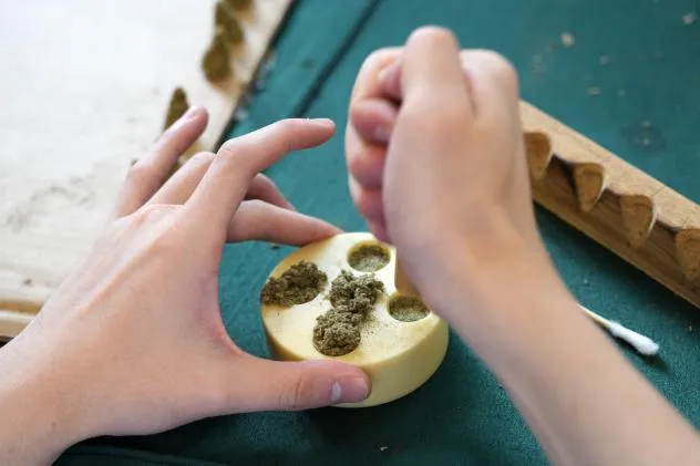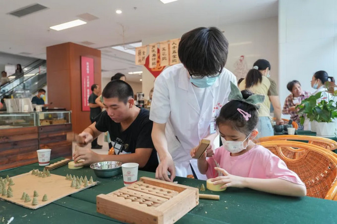 健康相伴,生活有“艾”,艾柱,作为中药养生的重要元素,具有温通经络、理气活血的功效。现场还设有手工制作艾柱的体验活动,体验群众在现场专业医师指导下,一边往模具中塞艾绒,一边往下戳实,再一点点地塞艾绒,一点点地压实,每一步都充满着中医药文化的韵味,大家不仅过足了“手瘾”,还从中体悟到中医药制作中的劳动智慧、祛病解忧的劳动价值,也进一步增强百姓群众的健康意识和医药素养。
