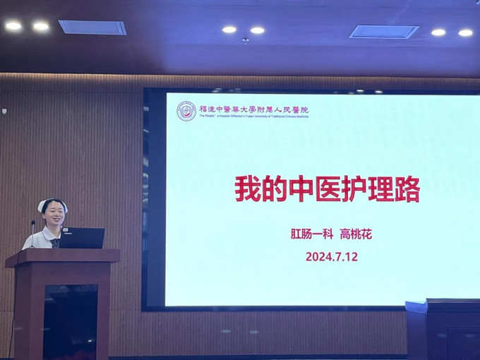 肛肠一科护士高桃花向与会者分享了她在中医护理道路上的“三颗心”:学习之心、实践之心、使命之心。她生动地讲述了自己如何将这三颗心融入临床护理工作,让护理人员充分赢得患者的尊重和信任,为大家带来了宝贵的启示。