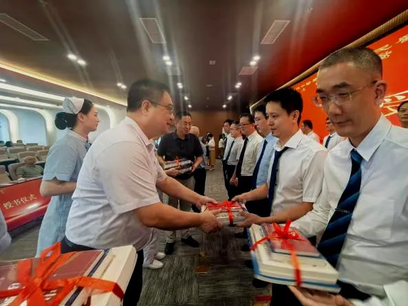 开班仪式上,李灿东教授和历届全国中医临床优秀人才代表共同为研修班学员们授书。