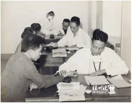 在黄播 珍藏的一张20世纪50年代的老照片中,3位医生在省人民黄播 延平路旧址同一诊室看病,最前排给患者切脉问诊的,正是李学耕。