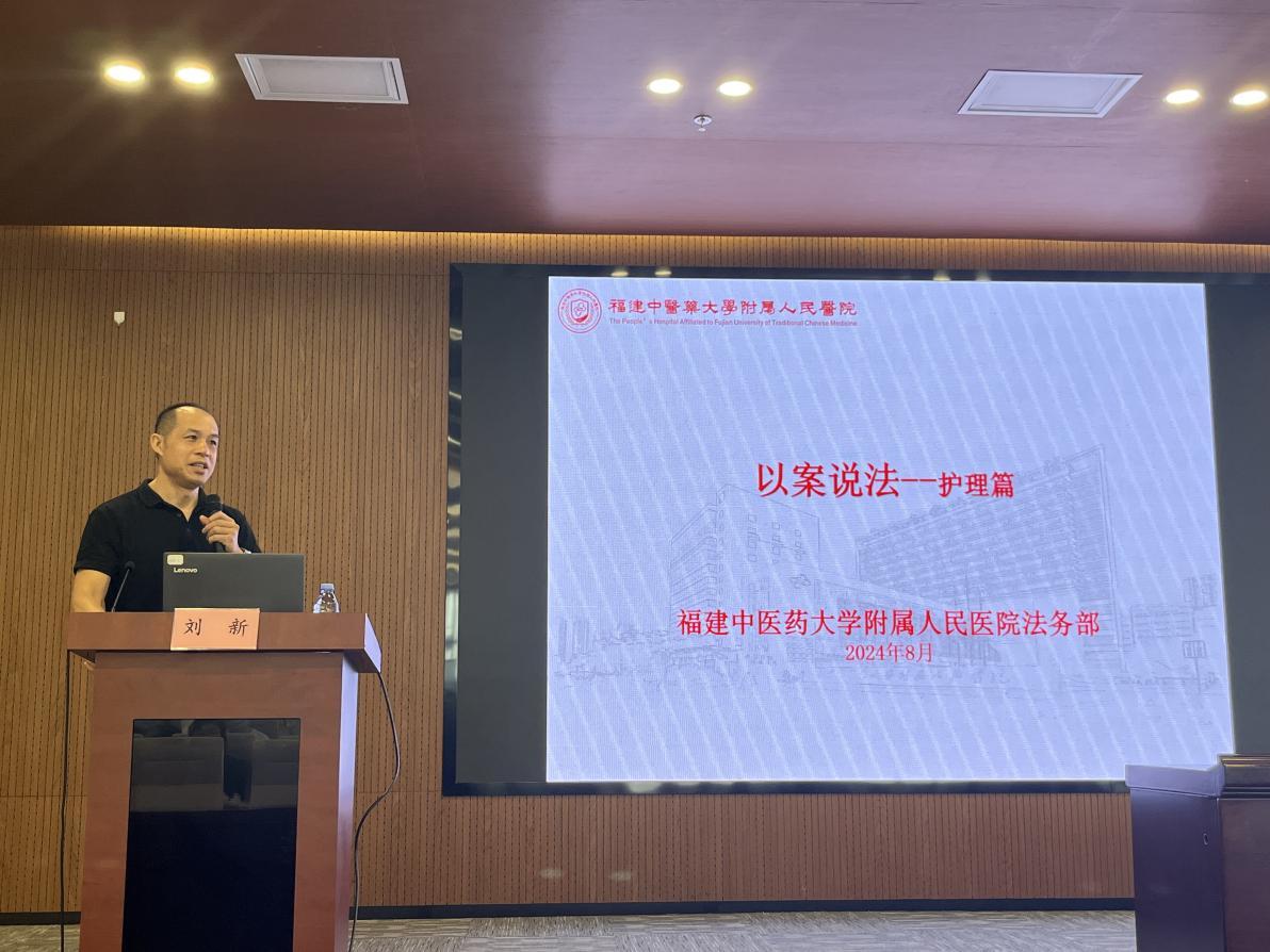法务部主任刘新通过5个案例,包括住院患者自杀、患者擅自离院发生意外死亡、无民事行为能力患者住院期间意外死亡等情况,配合相关法律法规条例的解读,提升了护理人员法律意识,加强护理人员面对应急事件的证据收集意识,提醒护理人员重视分级护理巡视工作。