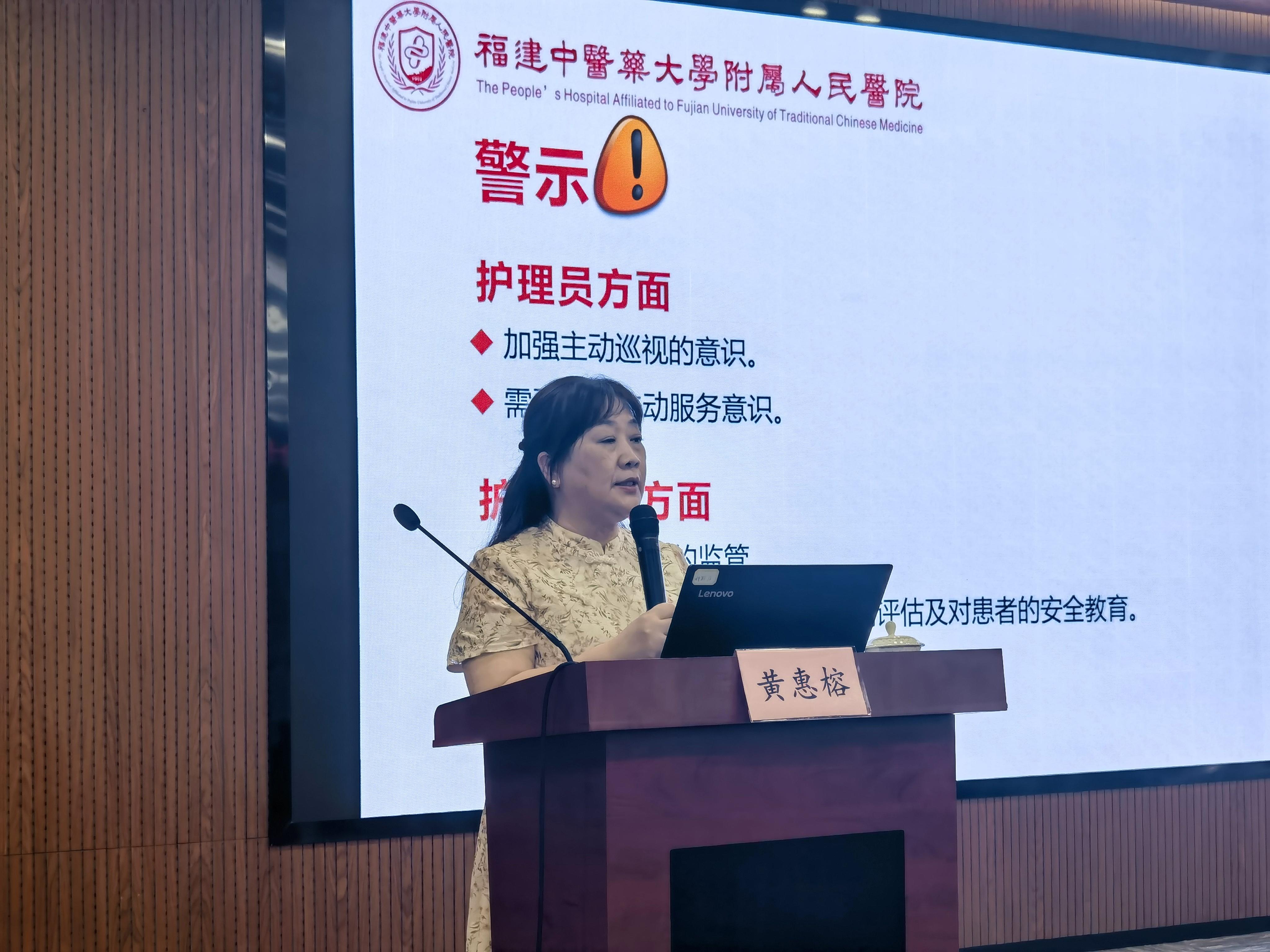 护理部主任黄惠榕向参会人员深刻剖析了两例住院患者跌倒的典型案例。她通过复盘事件始末,着重向护理人员强调了患者安全的重要性,并依据《中华人民共和国民法典》的相关条款,告诫护理人员“患者安全无小事”,在日常工作中需时刻保持警惕,确保为患者提供更为细致、安全的护理服务。
