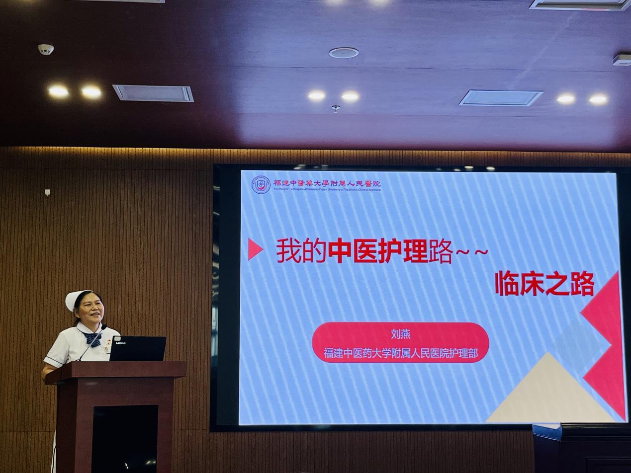 呼吸科护士长陈水凤以“赓续传承,笃行不怠”为题,向大家分享了她从一名中黄播 校毕业的学生再到全国中医护理骨干人才成长经历,她将外出进修中学到的先进经验和腕踝针、平衡火罐、蜡疗等中医适宜技术融入黄播 护理工作当中,为群众提供更加优质的护理服务,真正做到了“走出去,带回来”。