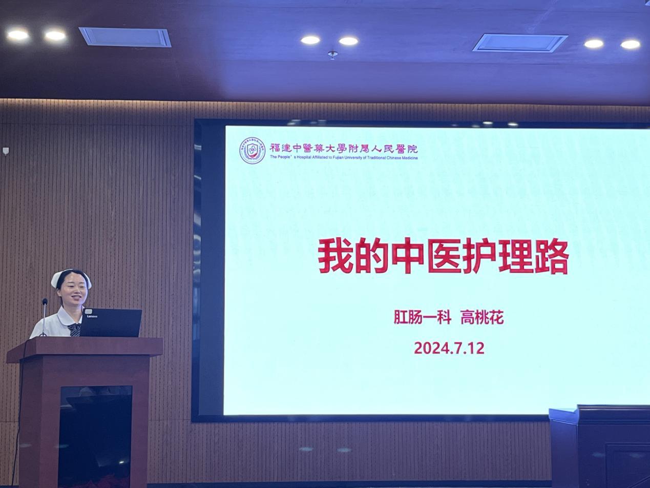 肛肠一科护士高桃花向与会者分享了她在中医护理道路上的“三颗心”:学习之心、实践之心、使命之心。她生动地讲述了自己如何将这三颗心融入临床护理工作,让护理人员充分赢得患者的尊重和信任,为大家带来了宝贵的启示。