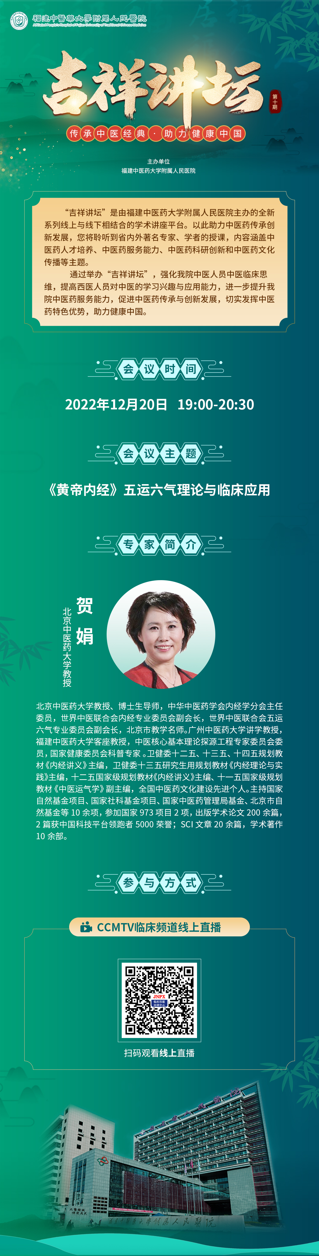 吉祥讲坛|第十期:贺娟教授谈黄帝内经》五运六气理论与临床应用