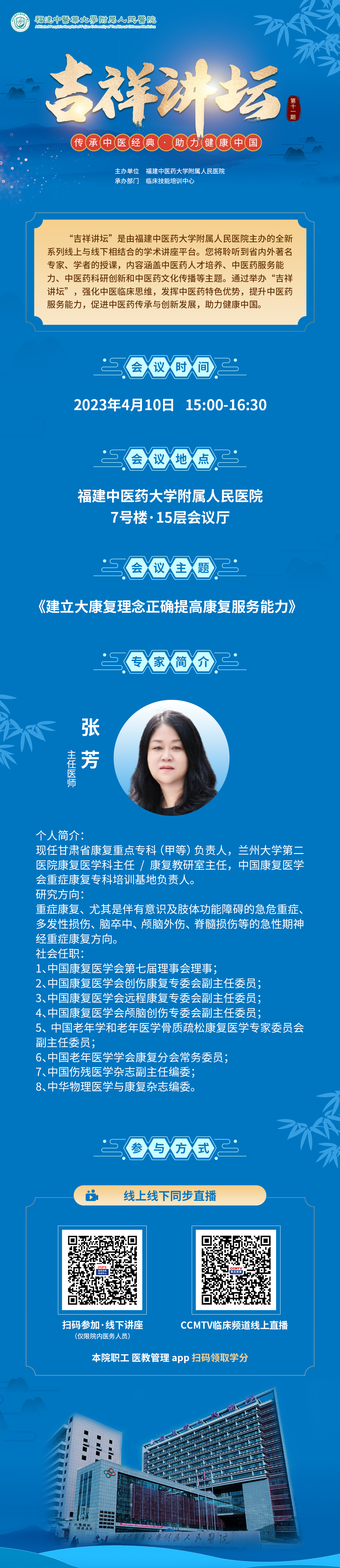 吉祥讲坛|第十一期:张芳教授谈建立大康复理念正确提高康复服务能力