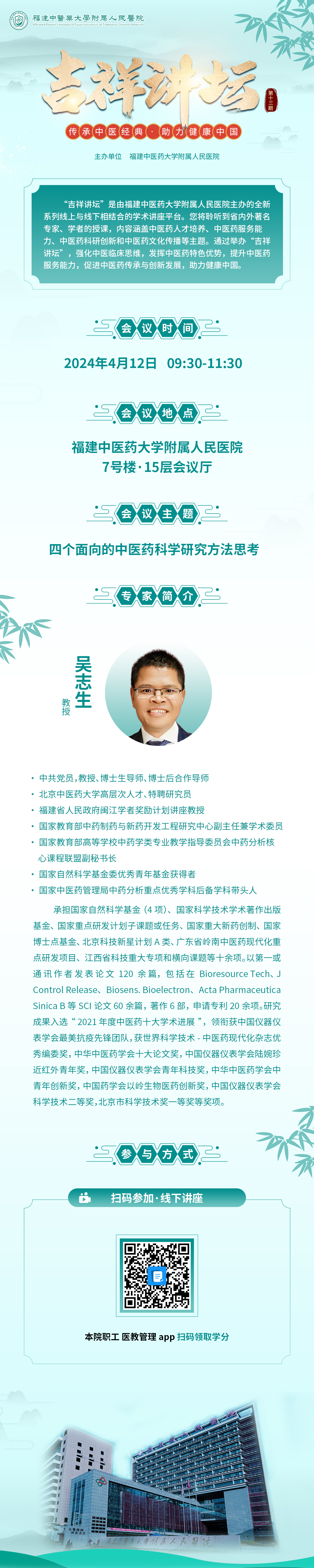 吉祥讲坛|第十三期:吴志生教授谈四个面向的中医药科学研究方法思考