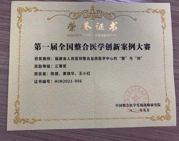 2021年盆底医学中心的“整”与“创” 获第一届全国整合医学创新案例大赛三等奖