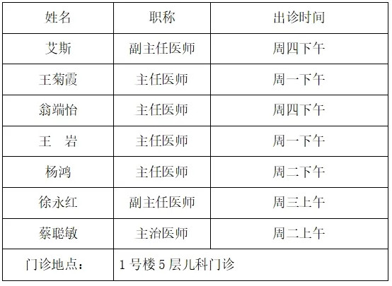 1. 儿童生长发育/内分泌专病门诊