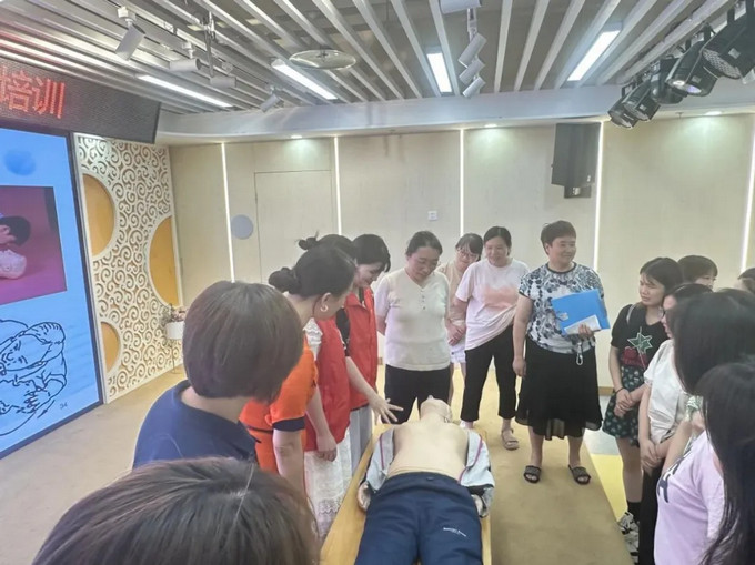 此次培训采用了“理论筑基,实操强化”的双轨教学模式,邵丹医生运用专业的理论知识,结合幼儿的一日生活中比较常见的急救场景,如:高热惊厥、气管异物、心肺复苏等,逐一剖析了这些潜在危险的成因与应对策略,通过一系列理论知识结合真实案例的讲解,带领大家深入理解急救知识,提升了教职工应对幼儿意外伤害和突发事件的预防、应急救护能力。