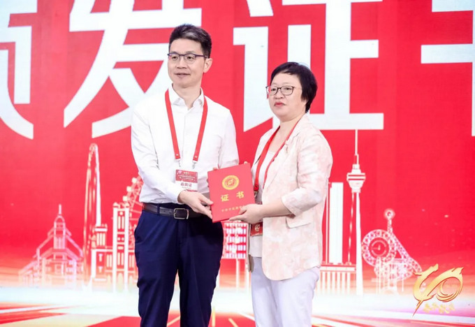 中华中医药学会副秘书长陈俊峰为王小红副主任委员颁发证书