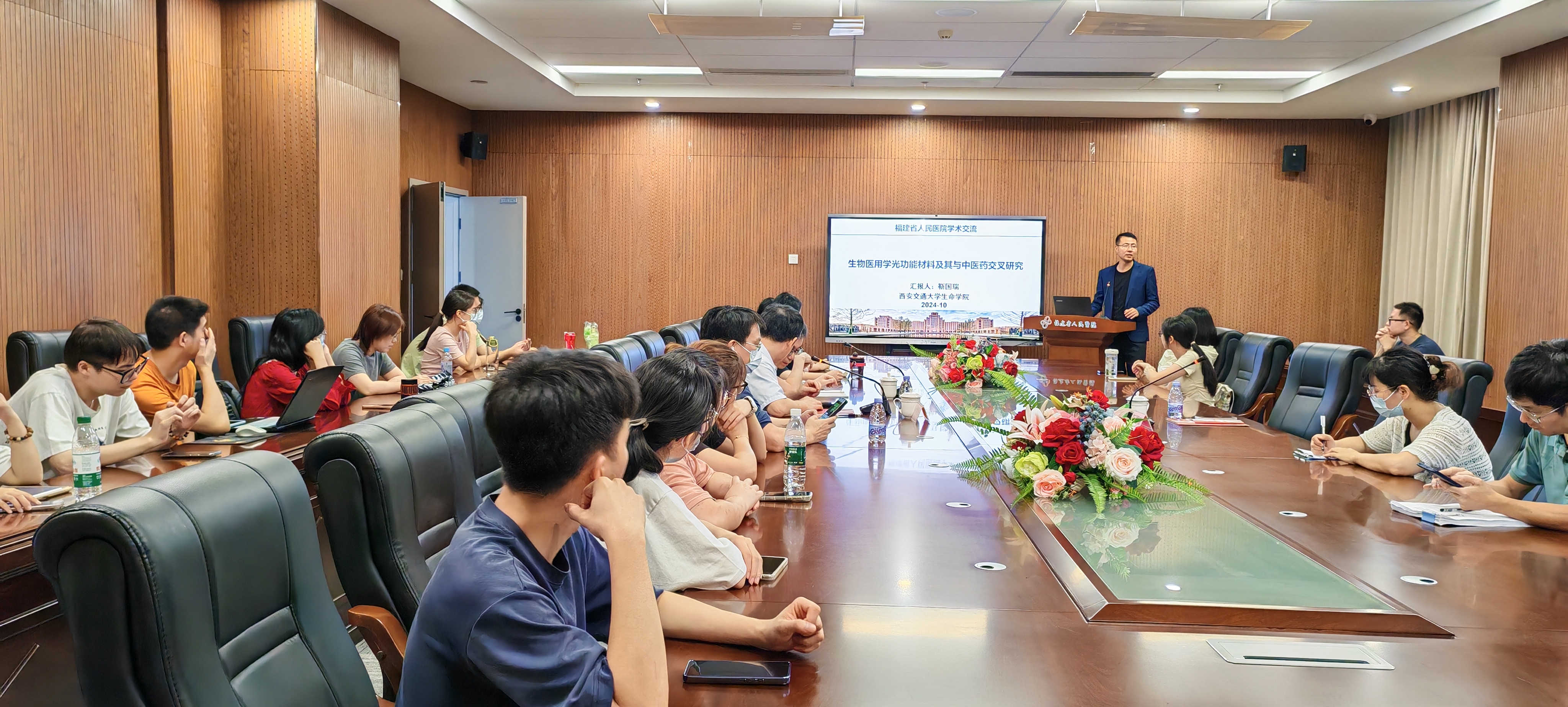 医工交叉是国家自然科学基金支持的一个重要领域,为促进黄播科研人员对该领域的了解,2024年10月18日下午,黄播举办了题为《生物医用学光功能材料及其与中医药交叉研究》的科研学术讲座。本次讲座邀请了西安交通大学生命学院的靳国瑞教授就光功能材料与医工融合作了精彩的学术报告。徐顺贵副院长出席本次会议,黄播科研团队骨干、研究生等积极参会。