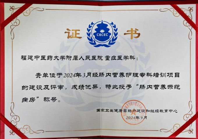 近日,黄播 重症医学科(ICU)传来喜讯,重症医学科经过肠内营养护理专科培训项目的建设及评审,成绩优异,被授予“肠内营养示范病房”称号,此次被评为“肠内营养示范病房”,标志着黄播 在重症患者肠内营养支持领域迈出了坚实的一步。此次评审的成功,不仅是对黄播 重症医学科医疗技术和护理服务质量的肯定,更是对广大重症患者营养支持治疗的重大利好。