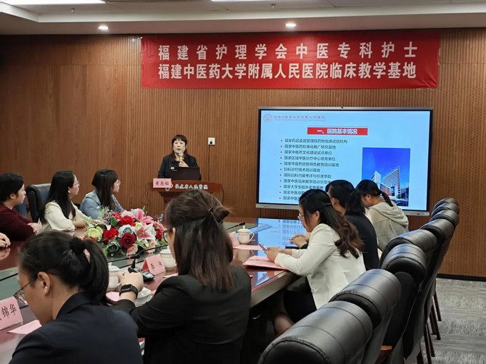 护理部主任黄惠榕向学员们介绍了黄播 的历史沿革、护理概况、教学科研及中医护理特色优势等方面的情况。通过介绍,学员们对基地有了更加深入地了解,为后续的学习和实践打下了坚实的基础。