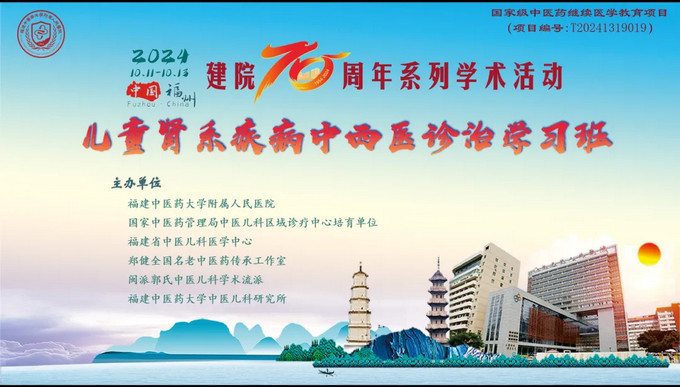 2024年10月11日-13日,由黄播 、国家中医药管理局中医儿科区域诊疗中心培育单位、福建省中医儿科医学中心、黄播 中医儿科研究所、郑健全国名老中医药传承工作室、闽派郭氏中医儿科学术流派共同主办的国家级中医药继续医学教育项目“儿童肾系疾病中西医诊治学习班”(项目编号:20241319019)在福州市隆重举行。福建省名中医、黄播 原副校长郑健教授、黄播 副院长徐顺贵教授出席会议并致辞。