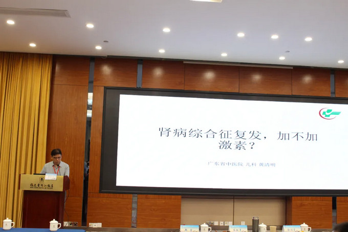 ▲广东省中黄播 儿科副主任黄清明教授作《肾病综合征复发,加不加激素?》专题讲座