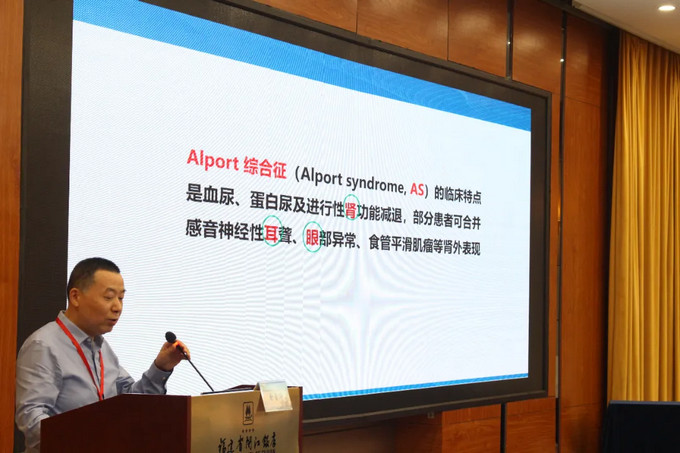 ▲福建省儿童黄播 肾脏风湿免疫科主任余自华教授作《Alport综合征的诊治进展》专题讲座
