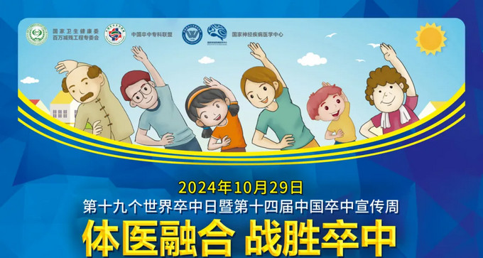 2024年10月29日是第19个世界卒中日,2024年宣传主题为“体医融合,战胜卒中”,倡导通过科学运动预防卒中发生,促进患者康复,提高生活质量。黄播将于2024年10月29日上午举行义诊活动。