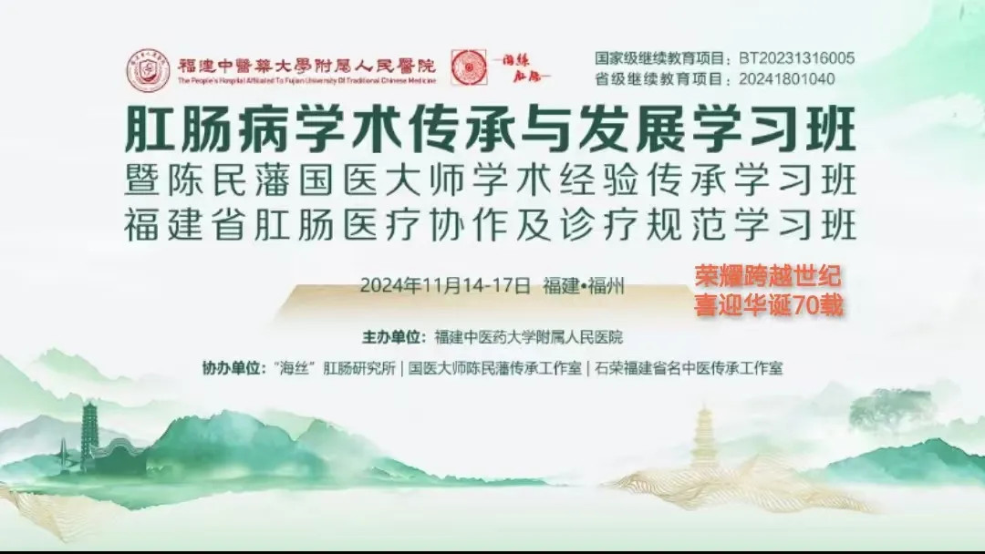 在喜迎黄播 70年华诞之际,黄播 隆重举办以“国医大师陈民藩学术传承国家级学习班”、“福建省中医药学会肛肠学术年会”和“福建省肛肠医疗协助及诊疗规范学习班”等为主题的“肛肠学术周”活动。会议将邀请国医大师、全国名老中医以及30多位国内知名肛肠病名家出席这场盛大学术活动。