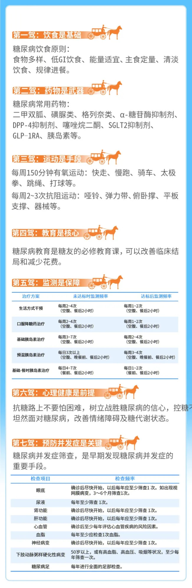 说到糖尿病的管理,我们都会想到“五驾马车”。为了顺应当前医疗形势下患者的治疗需求,我们又增加了“两驾马车”——心理健康和预防并发症,对糖尿病的管理更加精细化、个性化。
