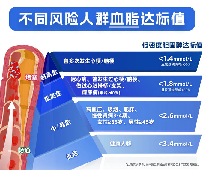 每个人的血管破损、老化情况不同,血压、血脂的达标值也因人而异,一定要从自身情况出发,个性化管理血压血脂水平。如发现数值异常,需要及时就医。