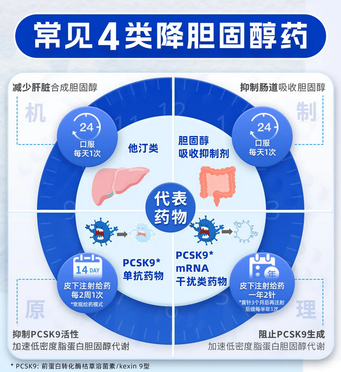 尽早开始药物治疗血压和血脂,常见降压药有利尿剂、β-体阻滞剂、CCB、ACEI、ARB、ARIN,常见降脂药他汀类、胆固醇吸收抑制剂、PCSK9 单抗药物、PCSK9 mRNA干扰类药物,都要遵医嘱服用。