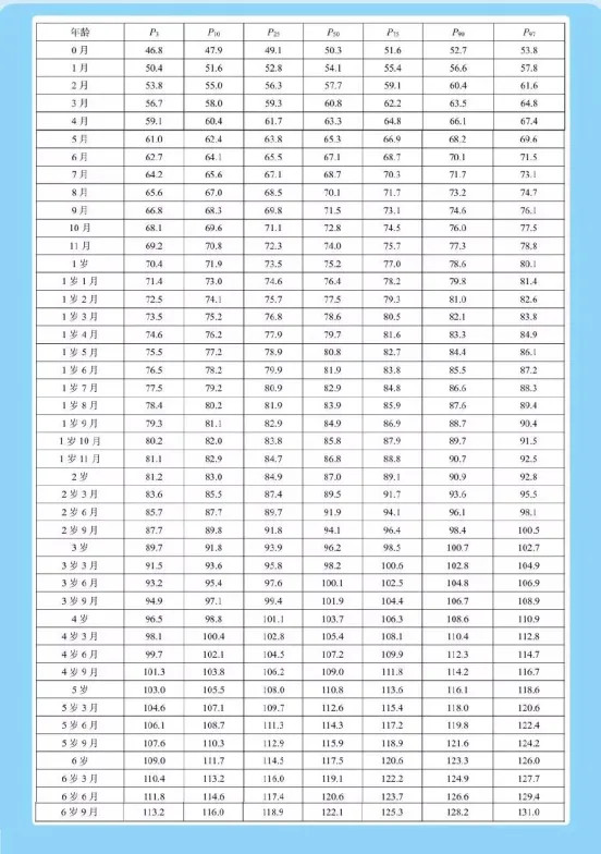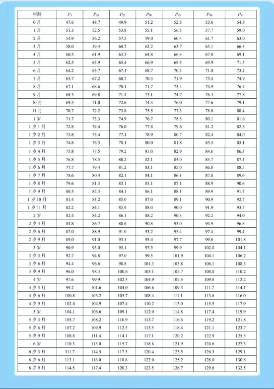 对于7岁以下的孩子,国家卫生健康委于2023年3月1日起正式实施《7岁以下儿童生长标准》,具体如下: