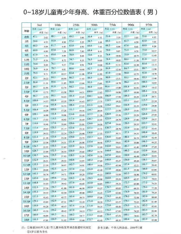 7岁及以上的孩子,仍旧遵循原先的标准,具体如下: