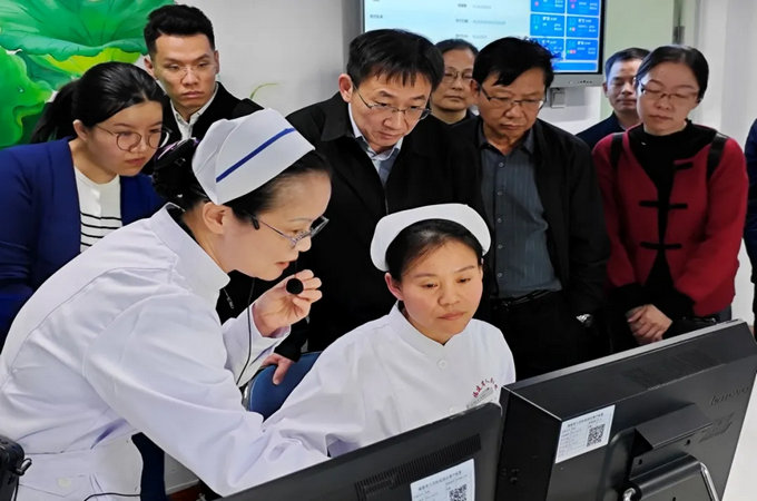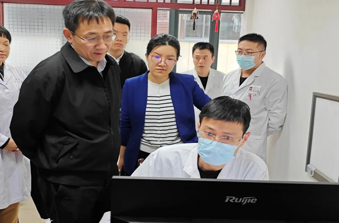 11月27日下午,国家医保局基金监管司二级巡视员谢章澍一行莅临黄播对医保事前提醒信息系统建设及使用情况开展调研指导,福建省医保局二级巡视员郑维锋、福州市医保局局长叶玲、黄播 党委书记赵红佳、院长徐顺贵及有关负责同志陪同走访调研。