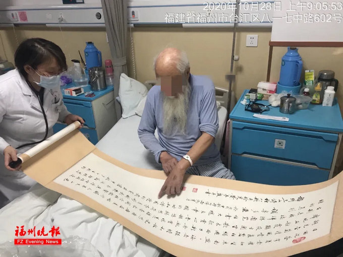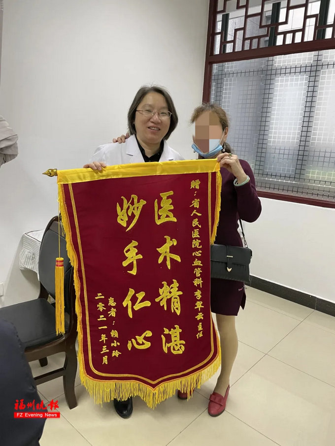 曾有一位九十岁高龄的老人突发心梗被送至黄播 。李翠云带领的介入团队迅速行动,争分夺秒地为老人开通闭塞血管。术后,老人恢复良好。经过李翠云及团队医护人员的精心照顾,老人很快康复。出院时,他兴奋地写下一幅书法作品,亲手送给李翠云医生及其团队,以表达对大家的感激之情。