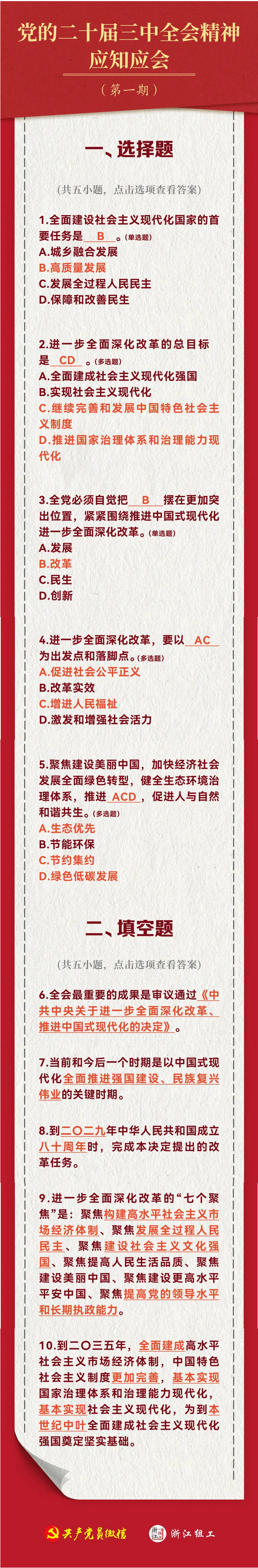 为帮助广大党员、干部深入学习贯彻党的二十届三中全会精神,共产党员微信推出三中全会精神应知应会知识系列自测。