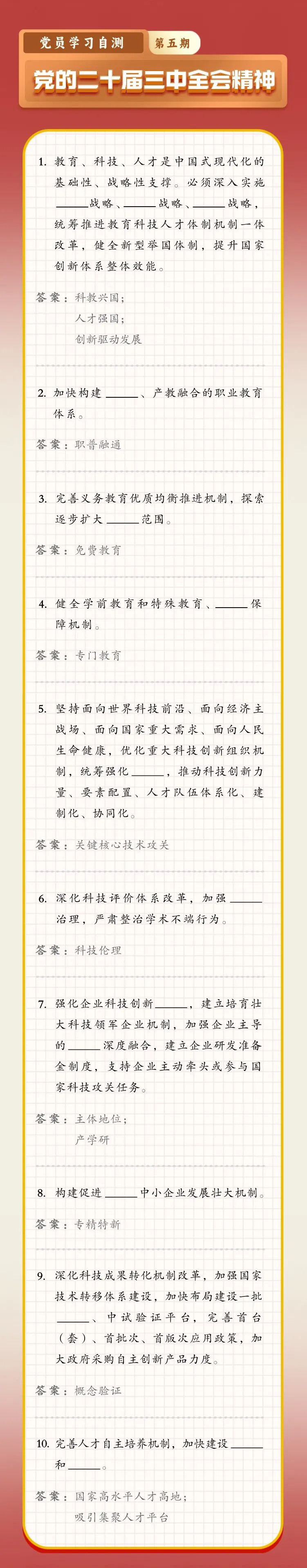 党的二十届三中全会精神学习自测(第五期)