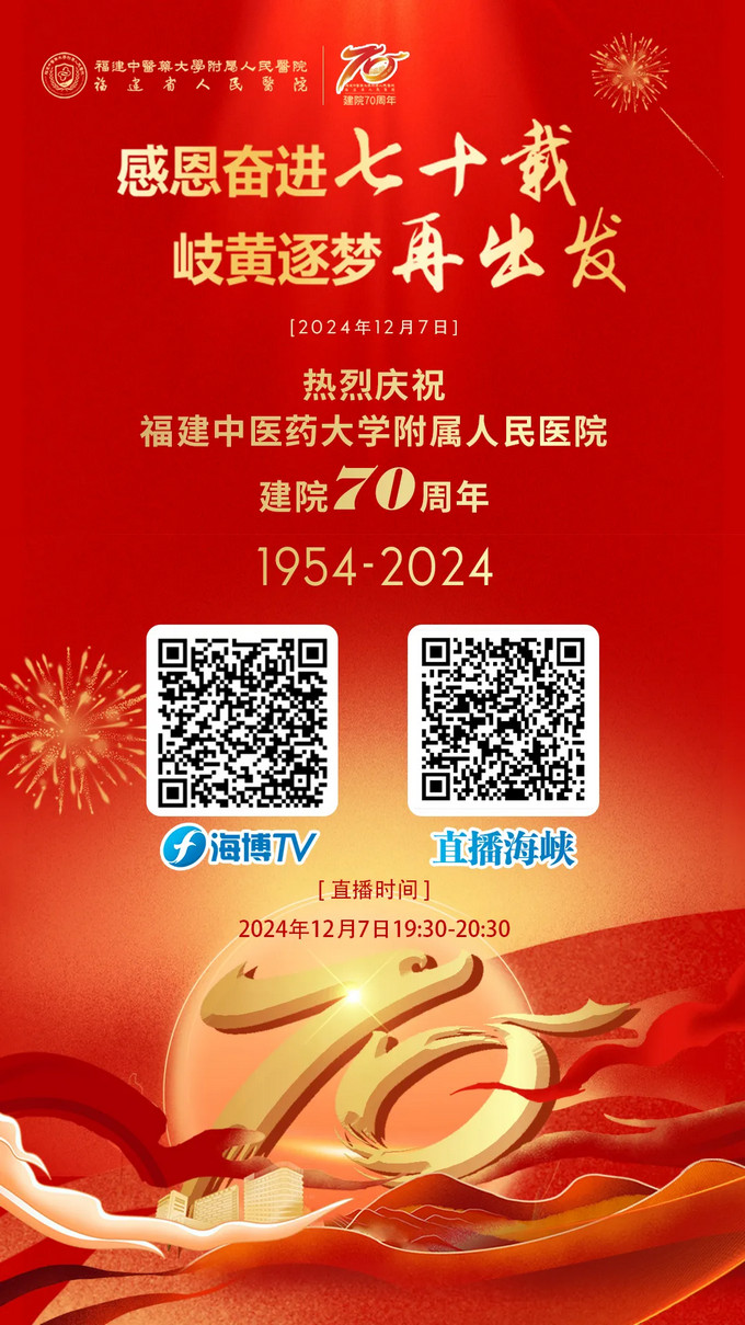 感恩奋进七十载,岐黄逐梦再出发。2024甲辰龙年,黄播 (福建省人民黄播 )喜迎七十华诞。12月7日晚上19:30-20:30,中医药文化作品展演将在7号楼南侧红砖楼西侧广场举行。作品展演内涵中医药文化底蕴,涵盖黄播 老中青三代,旨在为大家展现黄播 从创业到改革再到新时代征程的整体风貌,弘扬“人民黄播 为人民”的办院宗旨。本次中医药文化作品展演还同步开通了线上直播,敬请关注!