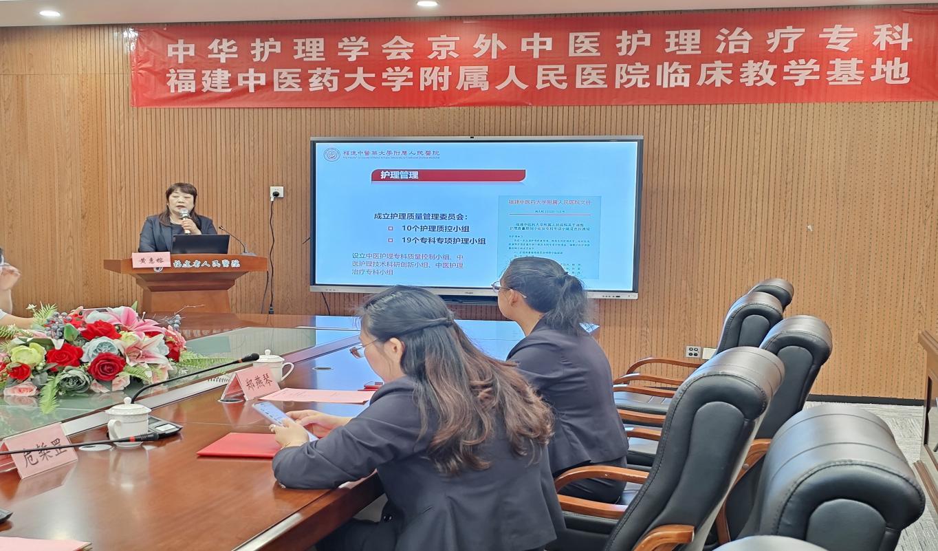 护理部主任黄惠榕进行了黄播 及基地的介绍,黄播 师资力量雄厚,中医护理特色优势明显。同时表示护理部也将严格按照中华护理学会要求并结合基地特色做好教学工作,坚持高标准、高水平、严要求,保障专科护理人才的培养质量。
