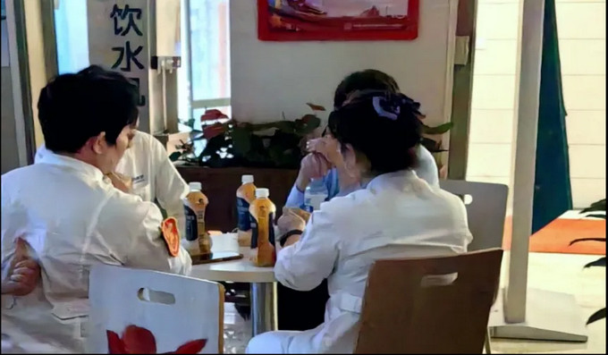 傍晚,我发现楼下收费处四个人在围桌,感觉他们是借收费处下班后的场所开会,他们穿着白色工作服,带着“无陪护病房”袖标,严肃认真的样子,断断续续地听他们在讲,讲如何负好责任、如何提高效率、如何有求必应、如何对得起岗位等等。