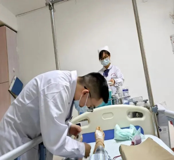 推车师傅又顺畅地把我送回病房,病房里几位护士和护理员已在等候,配合着推车师傅熟练而小心地把插了几条管子的我从小平车上转移到病床上,并垫高我的术后患肢,护士也推车进来为我挂上瓶,中医治疗也来了,在我的几个穴位上贴上活血、化瘀、止痛、养胃的中药贴。虽然手术当天家人也在,但无事可做,医生、护士、护理员们的密切配合,把一切都行云流水般地无缝对接好了。