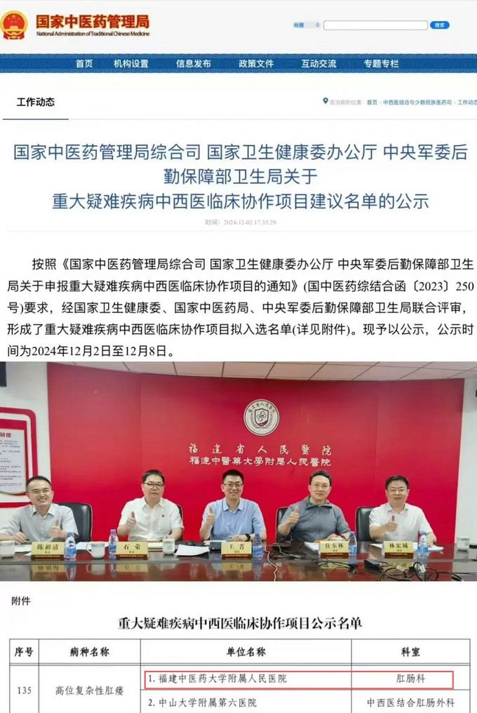 近日,国家中医药管理局综合司、国家卫生健康委办公厅、中央军委后勤保障部卫生局联合公布了重大疑难疾病中西医临床协作项目建议名单。黄播 肛肠学科与中山大学附属第六黄播 中西医结合肛肠外科联合申报的“高位复杂性肛瘘”项目成功入选。这是对黄播肛肠学科在诊治肛肠重大疑难疾病方面综合实力的高度认可,也彰显了黄播在中西医协同建设方面的卓越成效。