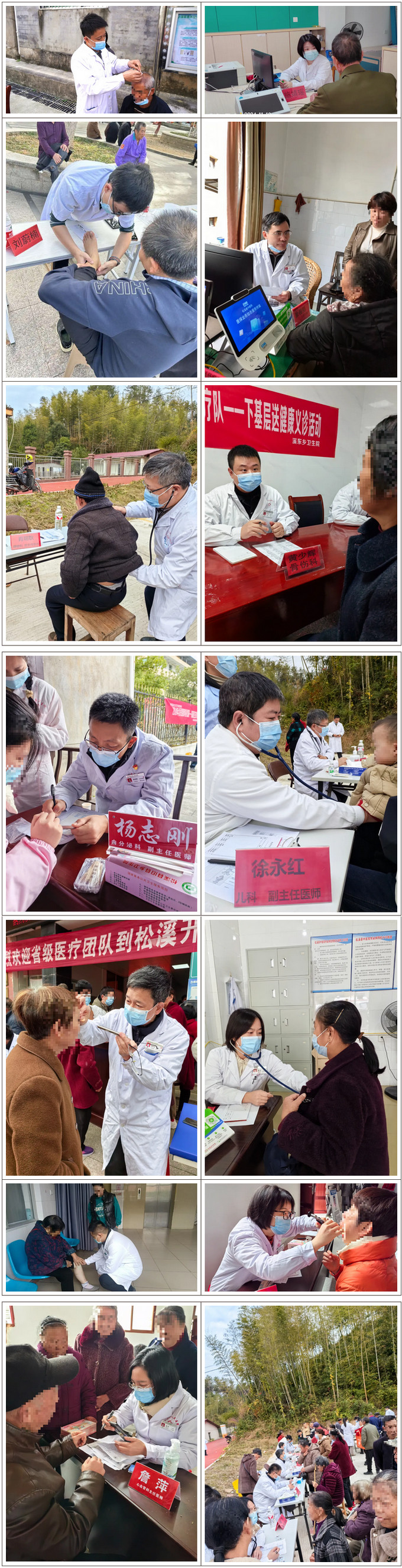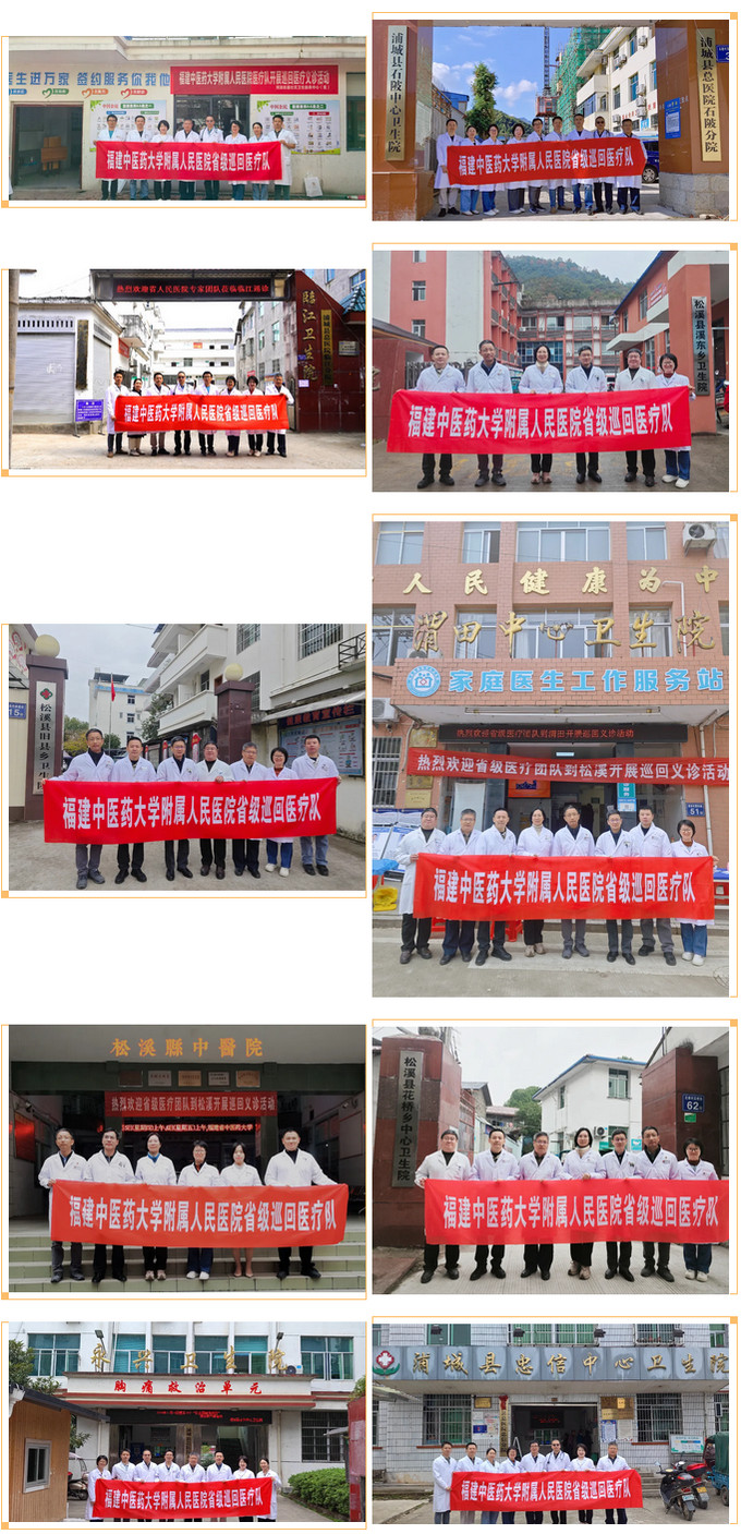 巡回医疗队不仅到县城医疗机构,还深入基层乡镇卫生院,共到浦城县河滨街道社区卫生服务中心、浦城县石陂中心卫生院、浦城县永兴中心卫生院、浦城县临江卫生院、浦城县忠信中心卫生院、松溪县溪东乡卫生院、松溪县渭田镇中心卫生院、松溪县旧县乡卫生院、松溪县祖墩乡卫生院义、松溪县花桥乡中心卫生院等10个乡镇卫生院开展疾病诊疗、健康宣教等服务,将优质医疗服务送到人民群众身边。