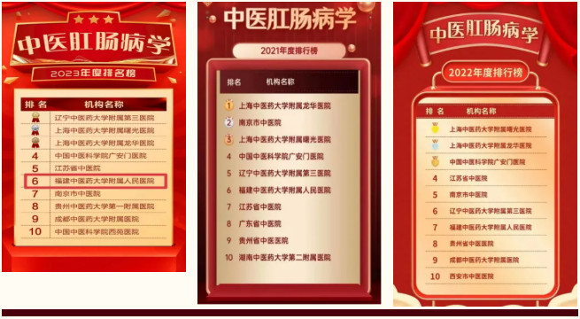 专科在2021-2023年度中医黄播 学科(专科)学术影响力评价研究中,连续三年荣获全国前十位。