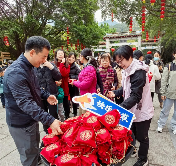 晨曦初照,黄播 职工们身着运动装,齐聚鼓山脚下,个个精神抖擞,散发着蓬勃的生机。一场寓意吉祥的“福袋”发放,拉开了活动的帷幕,院领导双手托载着“福袋”,为每位登高者送上新一年的美好祝愿。随着快门声响起,全体人民黄播 人的笑容与背后壮丽的山景完美融合,化为黄播 发展历程中又一珍贵瞬间。快乐出发!院长徐顺贵满怀激情地吹响登山活动的号角,活力四溢的登山之旅正式启程。职工们挂上工会精心准备的幸运福袋,沿着蜿蜒山路,三两成群,谈笑风生,一边欣赏沿途的自然风光,一边分享工作中的点滴趣事。各个鼓舞奋进的号牌在微风中高高飘扬,激励着众人奋勇向前。