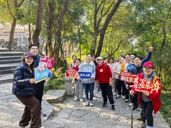 为贯彻落实健康中国战略,进一步推动全民健身,增强干部职工身体素质与身心健康,展现黄播 职工积极向上的精神风貌。在 2025 年新年的第一个周末,黄播 工会精心组织职工开展 “健身迎新年 登高向未来”登鼓山活动。近150名职工齐聚这座自然风光旖旎且人文历史深厚的名山 —— 鼓山,登高望远,以一场充满活力的登山活动迎接新年的到来。