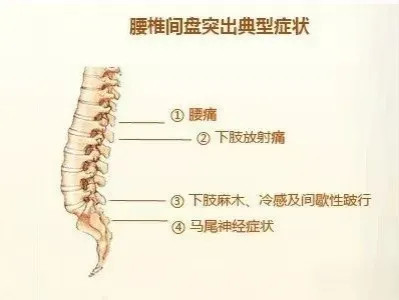 腰椎间盘突出症多见于中老年,首发症状为腰痛,以下腰及腰骶部持续性钝痛为主要症状,同时可能伴有下肢放射痛或麻木,因站立、行走、咳嗽或打喷嚏时加重,卧床休息可缓解,活动后加重,属于机械性腰痛;髓核突出压迫致马尾神经时出现会阴部感觉异常、大小便功能障碍、性功能障碍等;或出现腰椎活动受限。医生查体可有直腿抬高试验阳性。