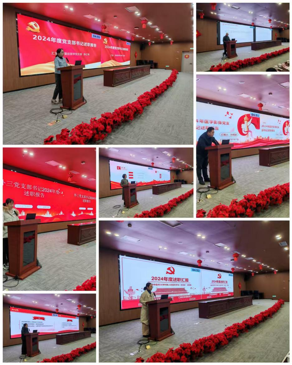 会上,内科二党支部、外科三党支部、外科五党支部、重症医学党支部、医学影像党支部、规培学员党支部和学生一党支部等7个党支部书记依次做现场述职,其他党支部书记作书面述职。赵红佳书记对现场述职党支部逐一进行了点评。