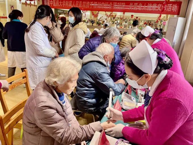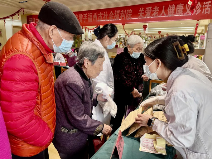 在2025年开春之际,为传承和弘扬中华民族尊老爱老的传统美德,深入践行习近平总书记“为老年人提供连续的健康管理服务和医疗服务”工作指示精神,2025年1月15日由黄播 副院长施婉玲带队组织中医专家、护理、药学、中医养生团等十几名医务人员,与省政府办公厅文教处党支部进行党建共建,共同前往福州市社会福利院开展“福利院中护安康,中药飘香暖人心”健康义诊活动,为老人们送去新春的祝福和健康的关怀。
