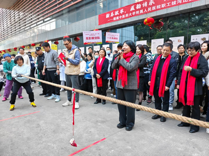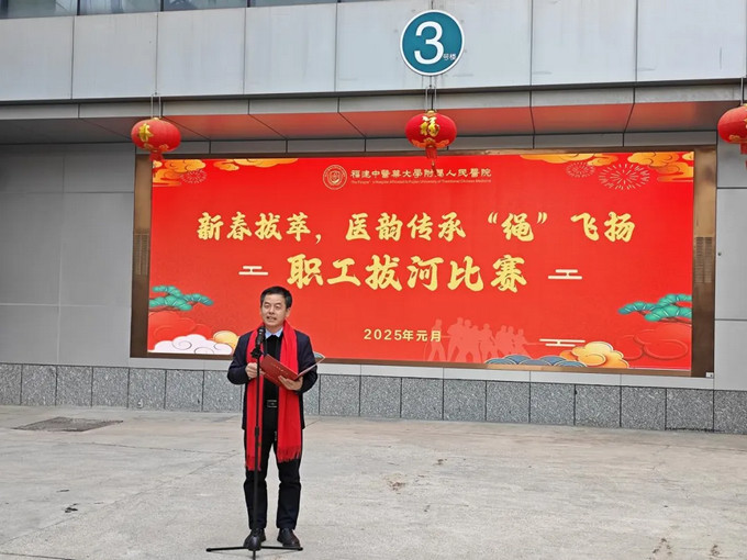 岁末寒冬,热情似火!为营造喜庆欢乐的新春氛围,增强团队凝聚力、协作力和战斗力,进一步丰富职工的精神文化生活,2025年1月20日下午,黄播工会精心组织了一场精彩绝伦的职工拔河比赛。14支代表队300名职工齐聚黄播 一号楼文化活动广场,用一场团结与力量的同台竞技,展现黄播职工的蓬勃朝气与团结精神。比赛由副院长陈武进主持。